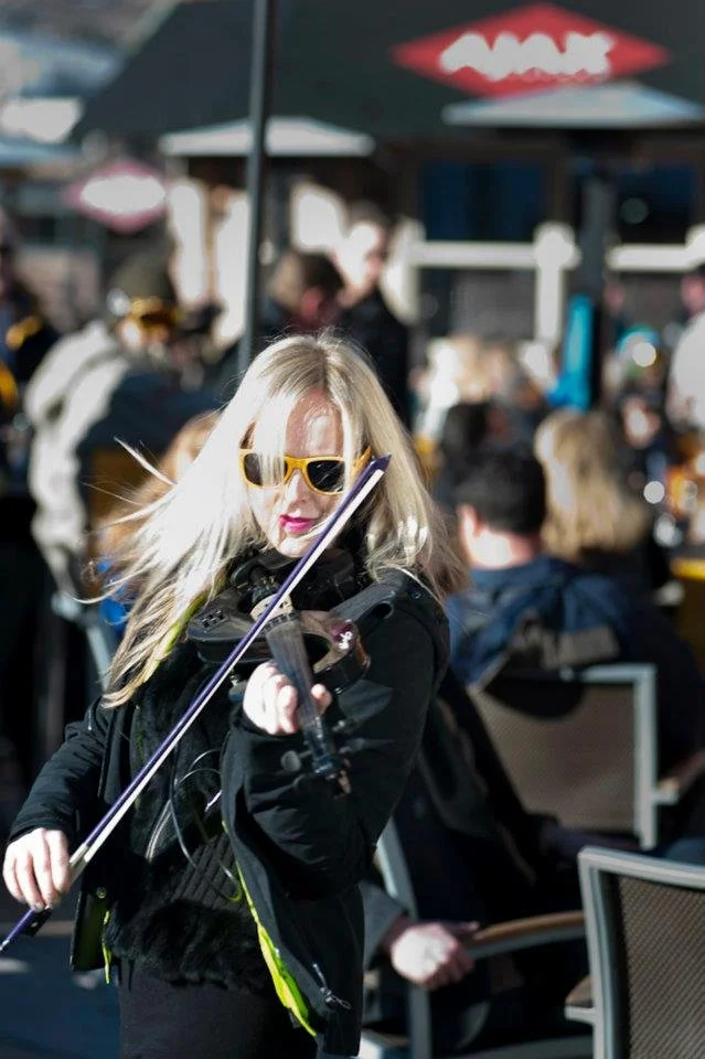 The champagne was literally chilled to perfection in the snow from Aspen Mountain. Guests of The Little Nell received a Fresh for Veuve Clicquot in the Snow Beauty Survival Kit. Violinist Katarina Visnevska performed along with DJ Dylan Regan wearing the iconic yellow Veuve sunglasses.